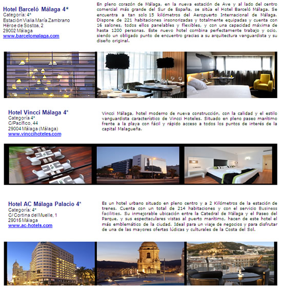 Participants booking their room in one of the official hotels (using the Hotel Registration Form below) will be able to use the shuttle buses to and from the conference location (Trade Fair and Congress Center of Malaga).