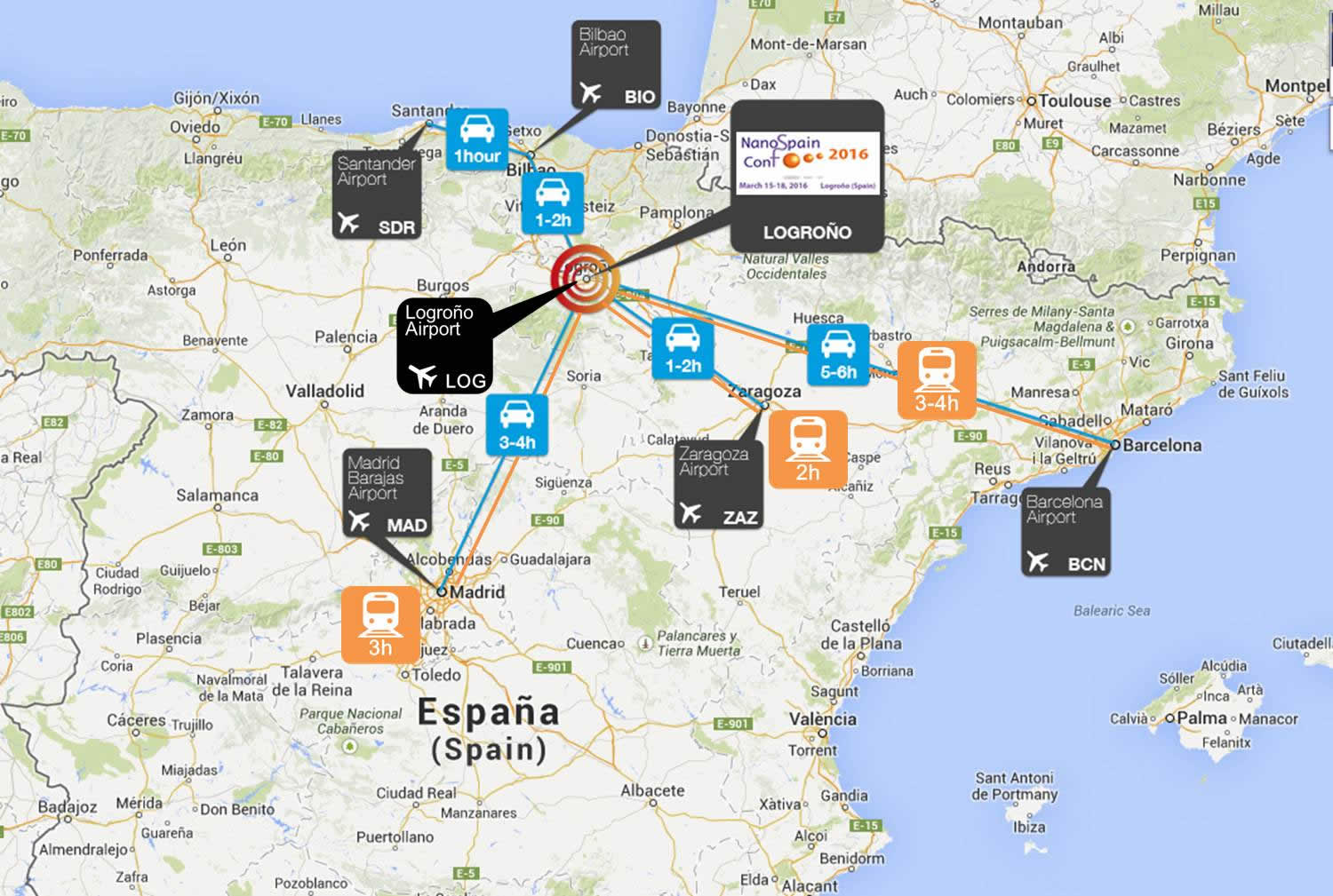 Barcelona-Logroño (478 km). AP-2, AP-68; or (473 km) A-2, AP-68