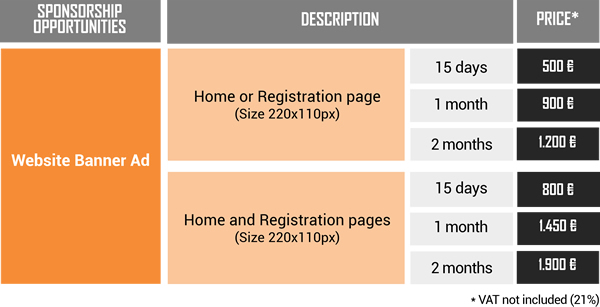 | - Advertisement – Banners, Program Ads, Logo Displays (Landing or registration pages, Abstracts booklet) |
